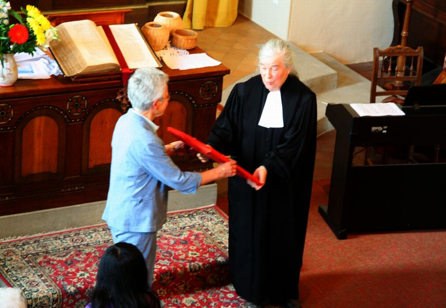 Remise d'un cadeau de la paroisse par Mme Martin